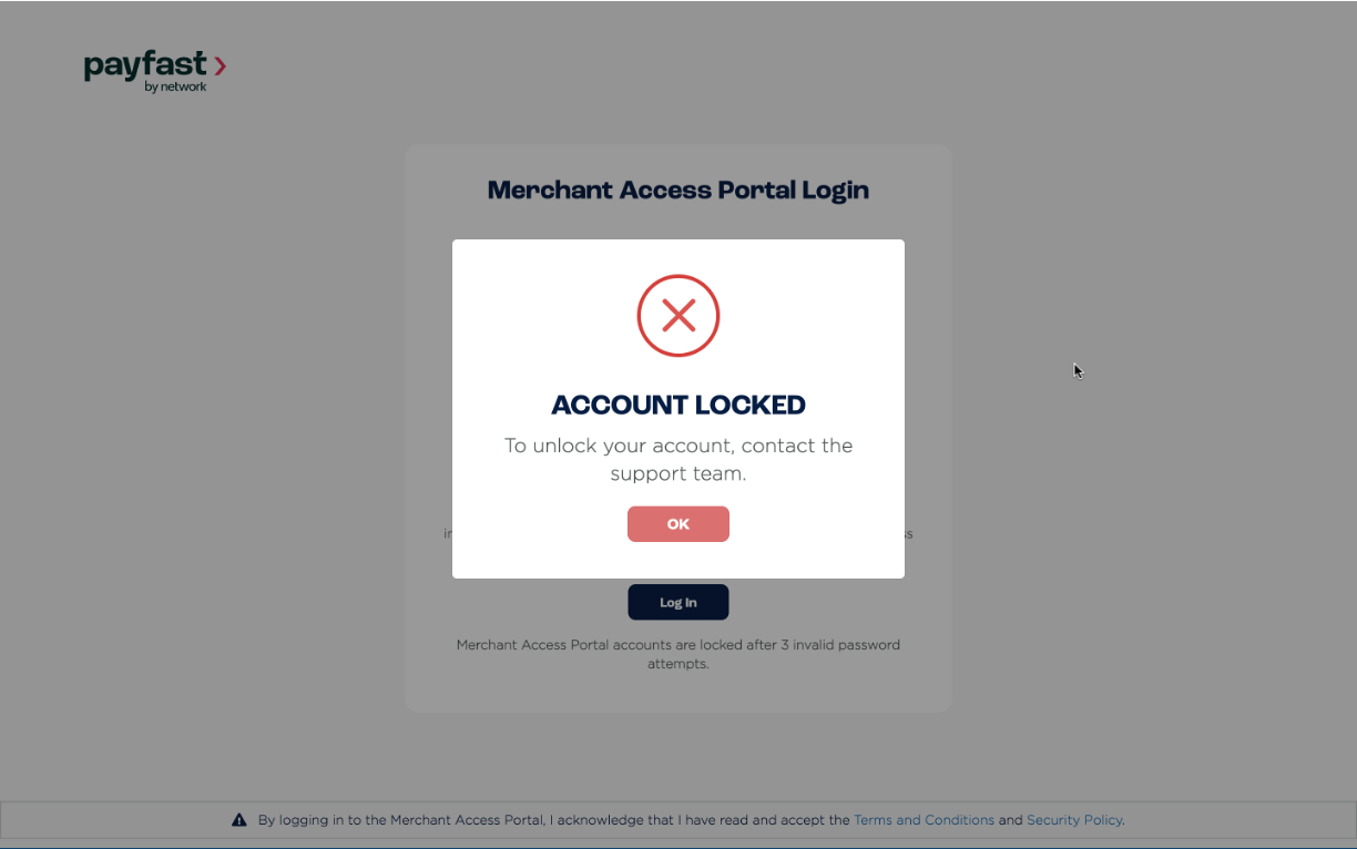 To help keep your Merchant Access Portal (MAP) account secure, we have a lockout system in place to protect against unauthorised access attempts. If you enter incorrect login details multiple times, your account will be temporarily locked for your protection.
